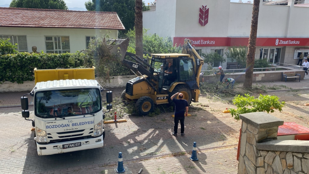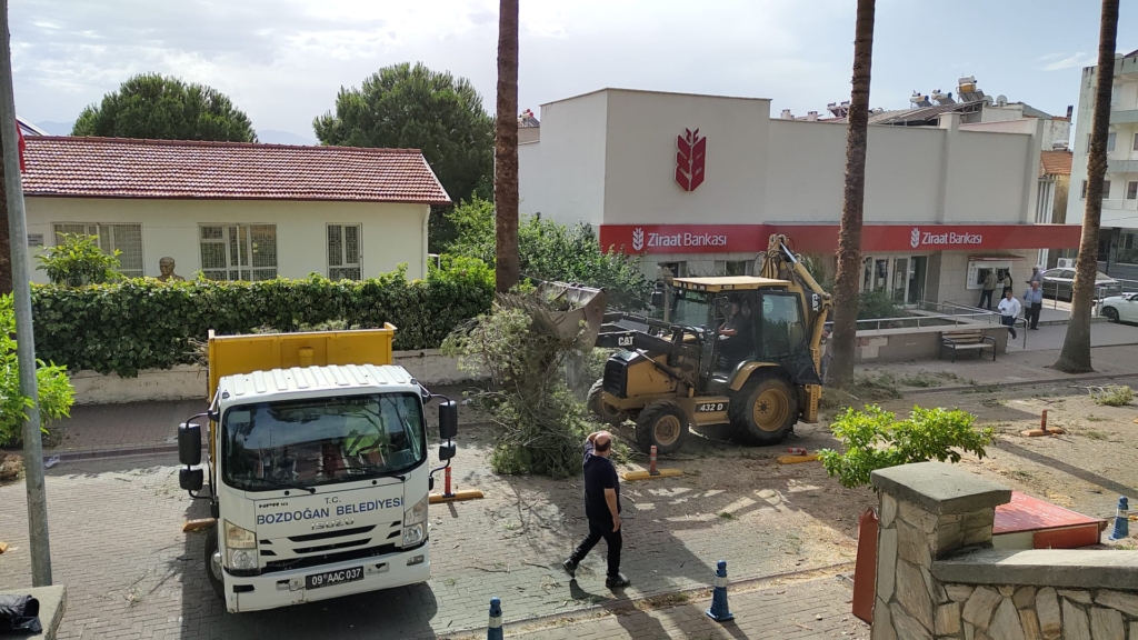 Fırtına nedeniyle yola devrilen ağaçlar Bozdoğan Belediyesi ekipleri tarafından bulundukları yerden kaldırılarak yol trafiğe açıldı.