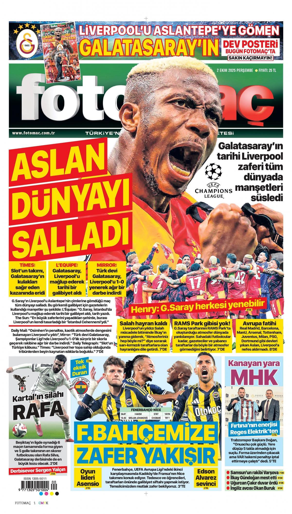 Fotomaç Gazetesi 2 Ekim 2025 Günü Gazete Manşetleri