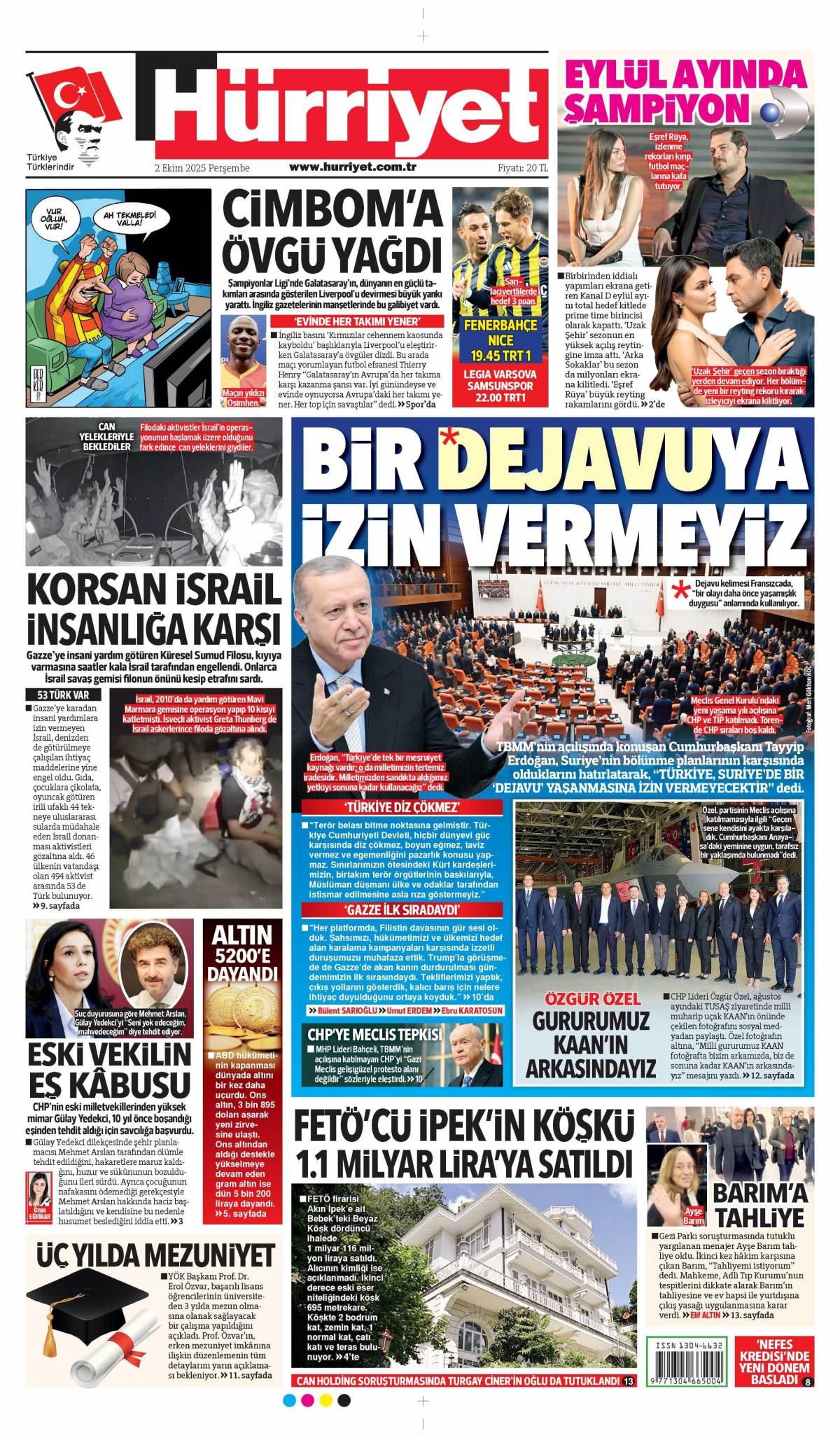 Hürriyet Gazetesi 2 Ekim 2025 Günü Gazete Manşetleri