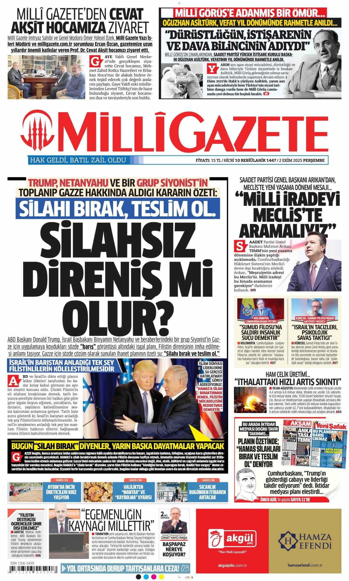 Milli Gazetesi 2 Ekim 2025 Günü Gazete Manşetleri