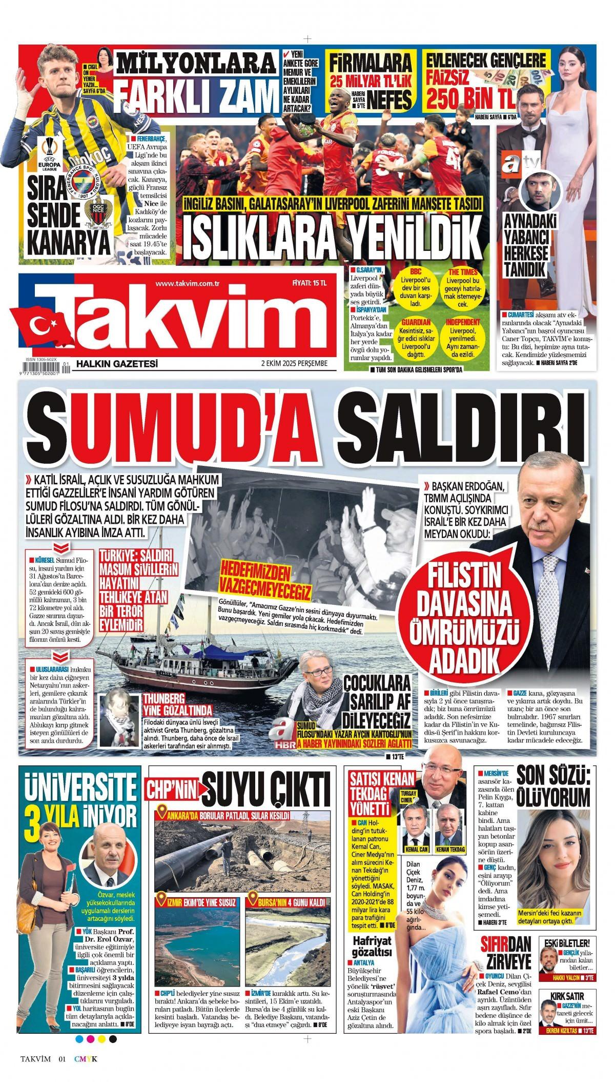 Takvim Gazetesi 2 Ekim 2025 Günü Gazete Manşetleri